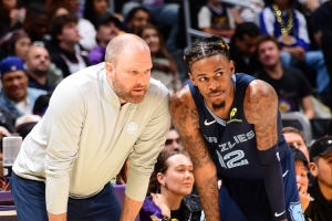 他说:“这赛季早些时候你们看到那些消息了吧,说什么莫兰特和新主教练处不来。其实今年早些时候我在节目里说过,我当时真的认为贾伦·杰克逊、布兰登·克拉克、所有这些球员,包括此前被交易的贝恩——我觉得这些球员和泰勒·詹金斯教练其实合作得很愉快。”