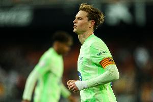 在西超杯决赛第90分钟,德容放铲踢到姆巴佩小腿,被红牌罚下。