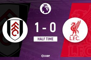 上半场比赛结束,富勒姆1-0利物浦。