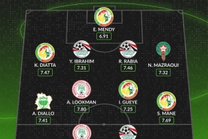中场:阿玛德·迪亚洛(科特迪瓦,7.41分)、卢克曼(尼日利亚,7.80分)、伊德里萨·盖耶(塞内加尔,7.25分)、马内(塞内加尔,7.69分)