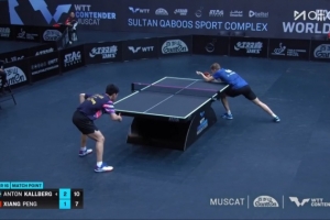 马斯喀特站男单1/8决赛,向鹏对阵安东·卡尔伯格,向鹏以1-3【5-11、8-11、11-6、7-11】不敌对手无缘8强。
