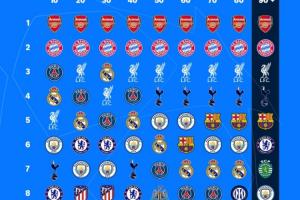 转播商亚马逊通过一张图片清晰明了地展示了本轮晋级形势随比赛时间的变化,直通的8个席位除前两名阿森纳和拜仁外,其余名次都随着比分变动经历了频繁的更迭。