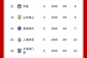 新赛季中超开赛前积分榜如图所示,9队将以负分开局!