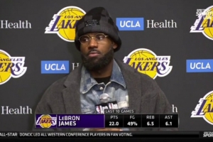 体育资讯1月29日讯 今日,湖人99-129客场不敌骑士。赛后,湖人前锋詹姆斯接受了采访。