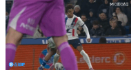 体育资讯02月02日讯 法甲第20轮,斯特拉斯堡主场迎战巴黎圣日耳曼,比赛第59分钟,小杜埃带球突破,被自己哥哥盖拉·杜埃放倒。