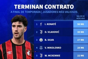 体育资讯2月17日讯 德国转会市场统计了本赛季结束后合同到期球员的身价,并列出榜单,科纳特5000万欧居首,弗拉霍维奇3500万欧次席。