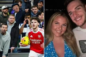 体育资讯02月23日讯 据英媒《镜报》报道,在凌晨进行的北伦敦德比中,有热刺球迷向赖斯展示他妻子的照片,以此来挑衅和嘲讽赖斯。