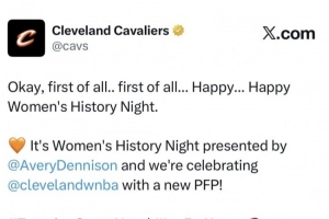 骑士官推的此番宣传文案完全引用了在2024年妇女节当天,缺席比赛的詹姆斯坐在湖人老板珍妮·巴斯及湖人高管兰比斯夫人之间时,向这两位女性致以节日祝福的话语。