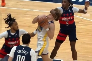 恩怨!小卡季后赛3战勇士 手刃初代水花 被渣渣垫脚 掀翻勇士王朝