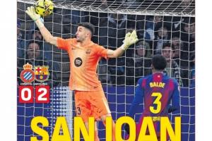 阿斯报头版:加西亚对前队友的精彩表现让巴塞罗那德比更具悬念。他面对米拉头球的扑救是本赛季关键扑救之一。奥尔莫和莱万多夫斯基在最后五分钟完成进球