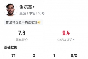 还是替补合适?舍什科本场数据:3射3正,6次成功对抗,评分6.7分