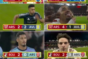 上赛季阿森纳联赛交手伯恩茅斯、维拉、布莱顿和埃弗顿,8场仅取得1胜5平2负的战绩,24分丢掉16分。